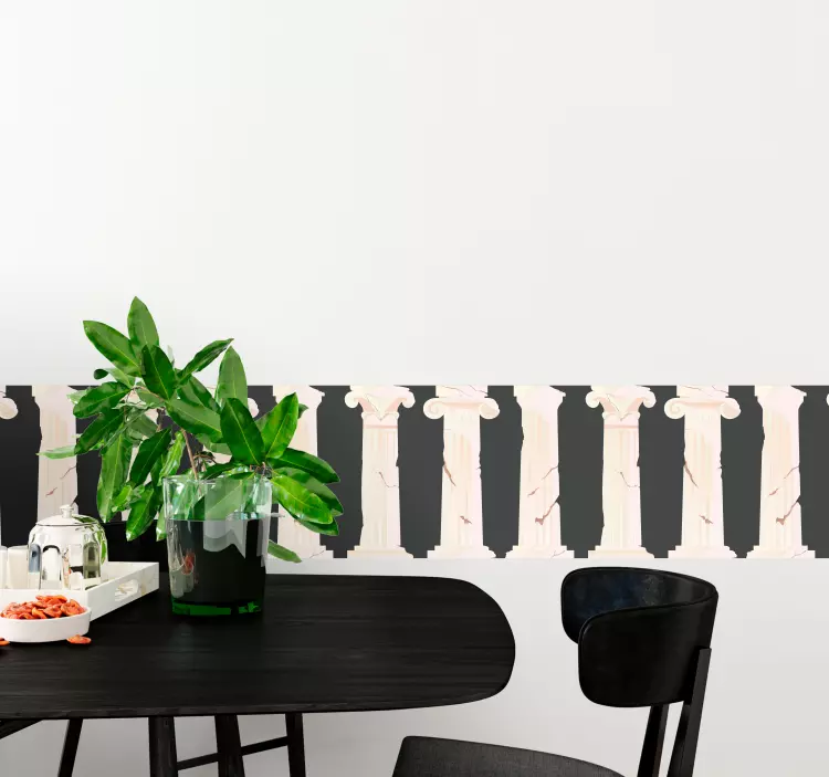 The Classic column design wall border sticker features an elegant antique Greek column motif that beautifully captures the essence of traditional decor. With its striking black background and exquisite marble detailing, this wall border sticker adds a touch of sophistication to any interior space.