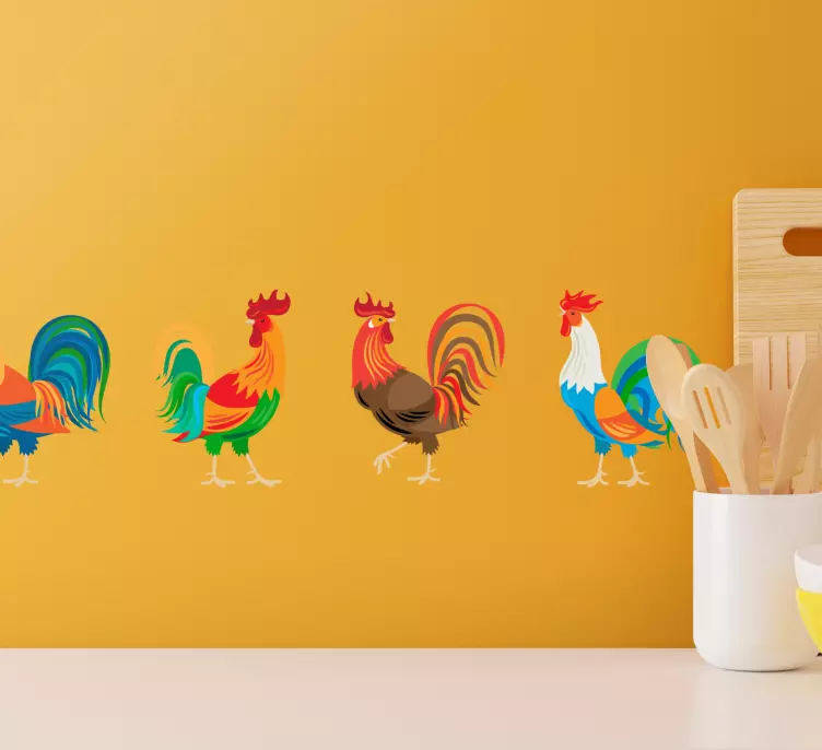 Colorful rooster display wall border sticker