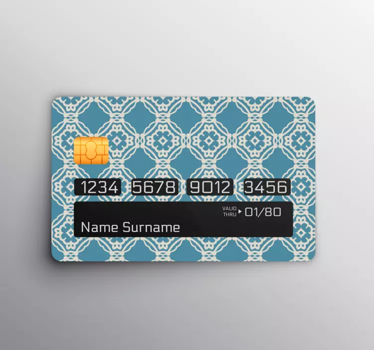 Introducing our stunning credit card sticker with patterned design featuring an exquisite blend of antique tiles and geometric patterns in rich blue hues. This ornamental texture transforms your credit card into a personalized masterpiece, perfectly merging style with finance. Elevate your everyday essentials with this unique artistic touch!