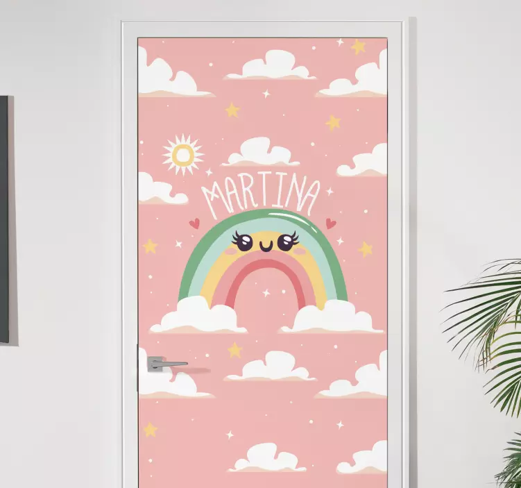 Transform your space with our Custom rainbow design door sticker, featuring a vibrant and playful graphic design that includes delightful elements like clouds, a radiant sun, and a cheerful rainbow. This personalized door sticker is perfect for adding a cute and fun touch to any room. Make it uniquely yours by customizing it with your name!