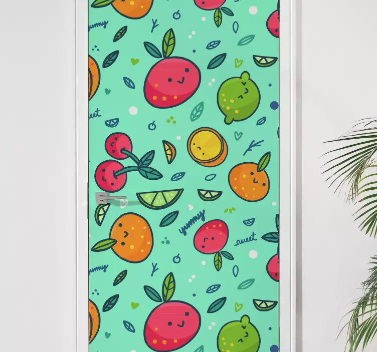 Add a burst of joy to your space with our Door sticker playful fruit patterns. This vibrant adhesive features delightful illustrations of cute fruits that will instantly brighten up any door. With its colorful and playful design, it brings a touch of nature indoors, transforming a mundane surface into a charming focal point. Perfect for those wanting to infuse their environment with a sense of fun and creativity!