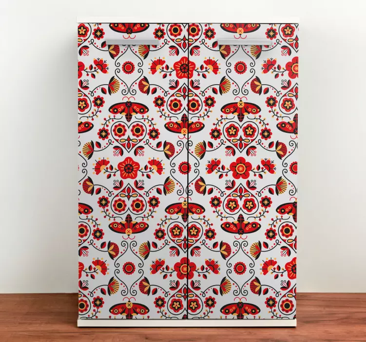Transform your kitchen with our stunning Fridge sticker botanical design art! This vibrant design features a delightful mix of folk motifs, colorful butterflies, ornate flowers, and natural patterns that breathe life into any space. The intricate detail and bright colors create a beautiful connection to nature, making your fridge a striking focal point in your home.