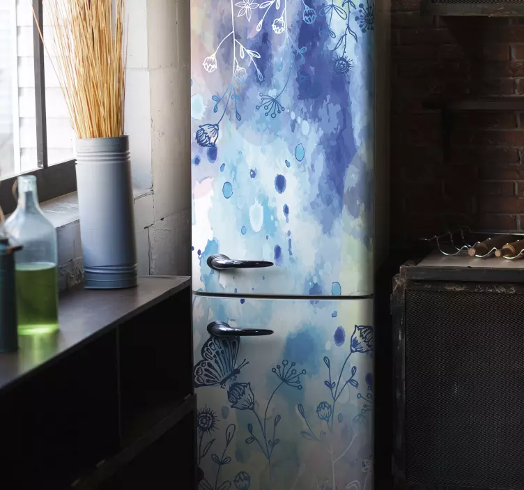 Introducing our stunning Fridge sticker floral butterfly design, a captivating piece that brings a touch of nature into your kitchen! With its beautiful blue watercolor splash and intricate floral and butterfly drawings, this vibrant design adds a colorful and artistic flair to any refrigerator. Let your fridge shine with this nature-inspired artwork that transforms ordinary spaces into extraordinary ones!