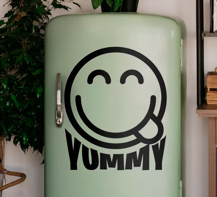 Applying the Fridge sticker happy food expression fridge sticker is a breeze! Simply peel off the backing and apply it to any flat surface. Our high-quality adhesive ensures it stays put, while the durable vinyl allows for easy cleaning and maintenance!