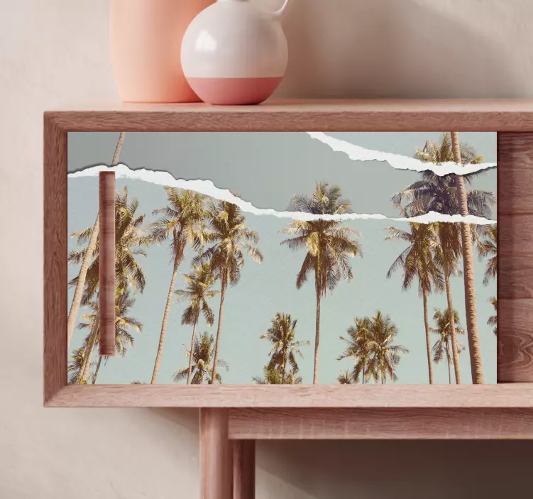 Transform your space into a serene tropical paradise with our Furniture sticker tropical palm view. This stunning design features graceful palm trees and a beautifully rendered torn paper effect that evokes a sense of nature and relaxation. Perfect for home decor, this sticker captures the essence of a peaceful oasis, bringing the beauty of tropical landscapes right to your furniture!