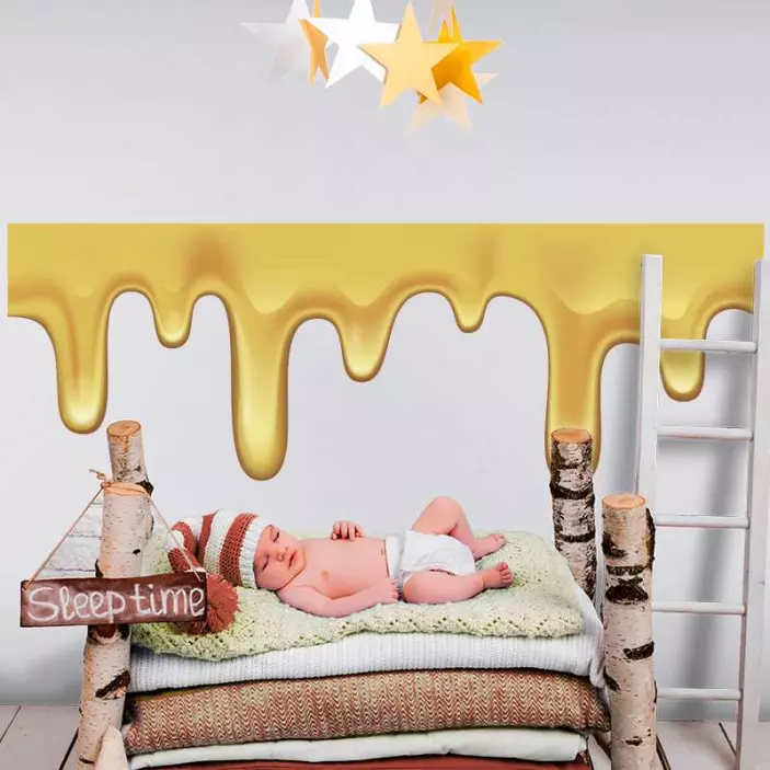 Transform your space with our stunning Gold dripping design decoration wall sticker, an artistic marvel that brings a touch of elegance to your decor. This design features dripping elements reminiscent of honey, cascading gracefully in a gold hue that adds a luxurious feel to any room. Its smooth texture creates a captivating visual experience, making it a perfect decorative piece for modern interiors!
