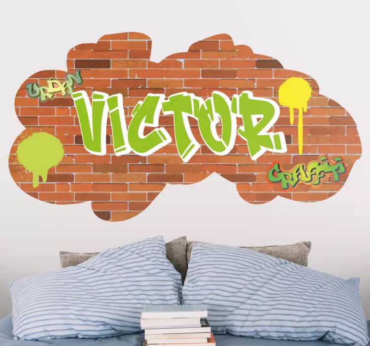 Introducing our stunning Headboard wall sticker urban personalized name, a vibrant fusion of graffiti, street art, and urban art that transforms any space into a lively and colorful atmosphere! This unique design features a dynamic brick wall texture with playful cloud elements, creating a perfect backdrop for personalization. Customizable to fit your style, this graffitti masterpiece effortlessly brings the energy of the city into your home. Perfect for those who appreciate colorful decor and want to make a statement!