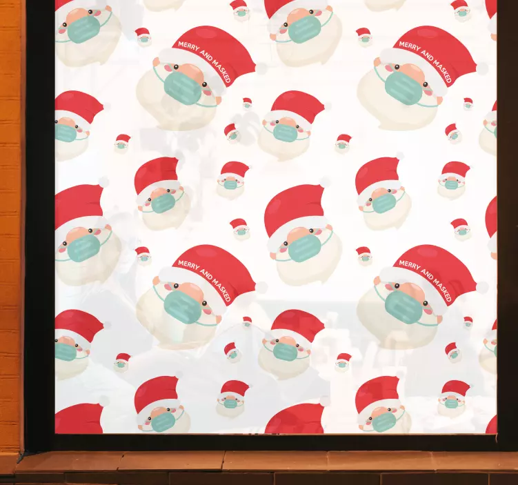 Celebrate the festive season with our enchanting Holiday sticker masked santa characters. This delightful design captures the spirit of Christmas with its charming Santa characters adorned with face masks, perfect for spreading holiday cheer while promoting safety. The window sticker features a vibrant pattern that brings a joyful touch to your decorations, making it an ideal addition for your home or office during the holidays!