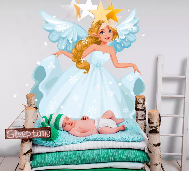Transform your child's space into a realm of magic and fantasy with our enchanting Kid's sticker fairy with wings. The whimsical design features a delightful fairy adorned with delicate wings, surrounded by sparkling snowflakes that bring joy to any room. This sticker is perfect for inspiring imagination and creativity in children, making their environment a playful canvas.