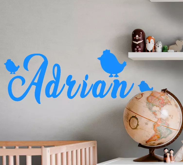 Introducing our delightful Kid's sticker personalized name with birds! This enchanting design features charming silhouettes of playful chicks and birds, perfectly tailored to showcase your child's name. Each sticker is custom-made, blending a sense of whimsy and personalization that brightens up any space. The vibrant colors and friendly design make it an ideal addition to a child's room, creating an inviting atmosphere that sparks joy and creativity!
