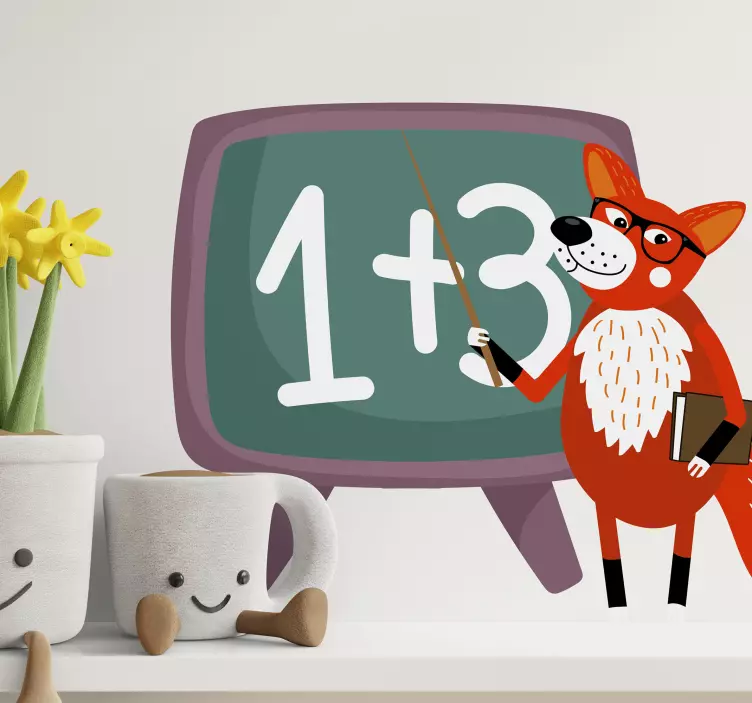 The Kid's sticker playful teaching fox is a delightful addition to any child's room, featuring a charming comic-style design that brings education to life! With a playful fox character as the teacher, this interactive sticker is perfect for sparking an interest in math and learning. The cartoon wild animal creates a fun classroom atmosphere, making it an ideal decoration for educational spaces.