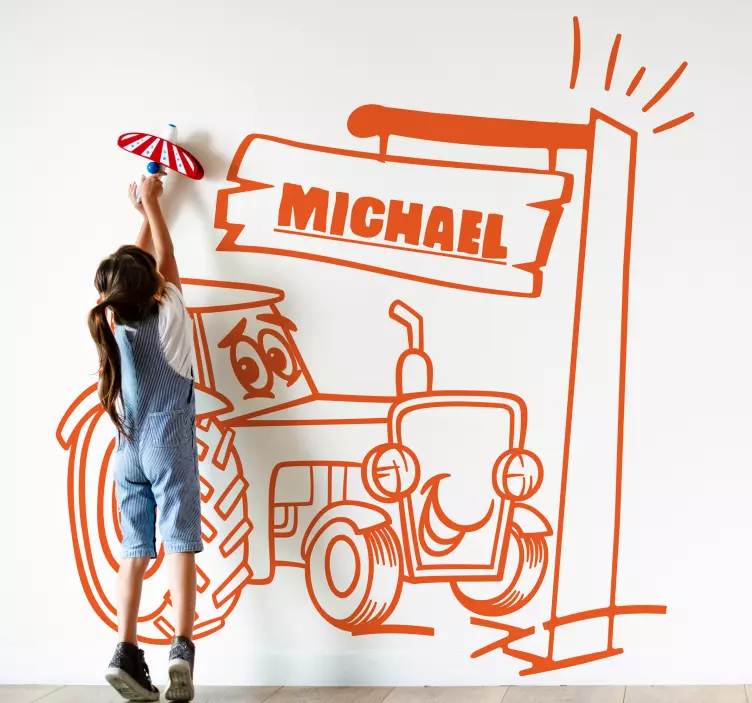 Transform your child's room into a whimsical wonderland with our Kid's sticker playful tractor scene. This delightful design features a hand-drawn tractor, perfect for igniting imagination and creating a fun atmosphere. Customizable text options allow you to personalize the scene, making it an ideal addition to any children's space!