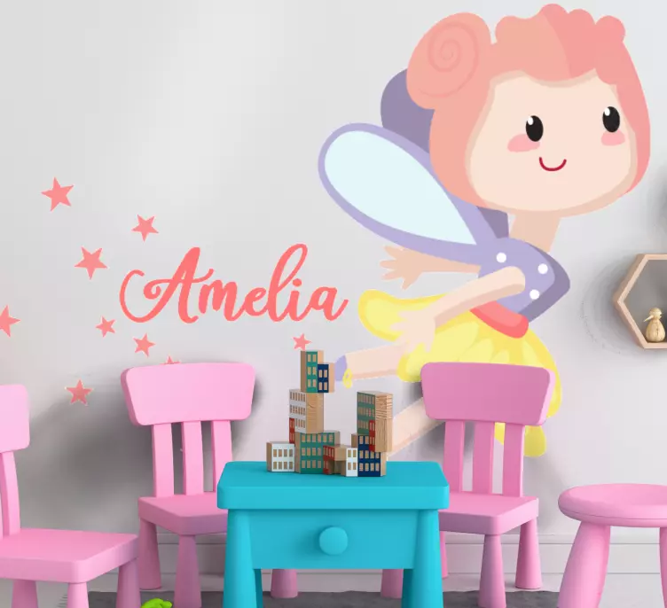 Introduce a touch of magic to your child's room with our Kid's sticker whimsical fairy character. This enchanting design features a delightful fairy girl, complete with a custom name in beautiful calligraphic script. Bursting with color and imagination, it's perfect for any child's room, transforming the space into a playful fantasy land!