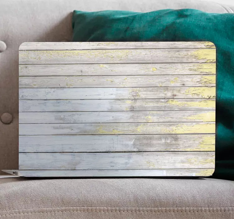 Transform your laptop into a stunning piece of art with our Laptop skin rustic timber finish. This design features a breathtaking graphical representation of weathered wooden planks, showcasing a rustic texture that effortlessly radiates warmth. The combination of yellow and white tones creates an inviting atmosphere, making your laptop not just a tool, but a statement piece!