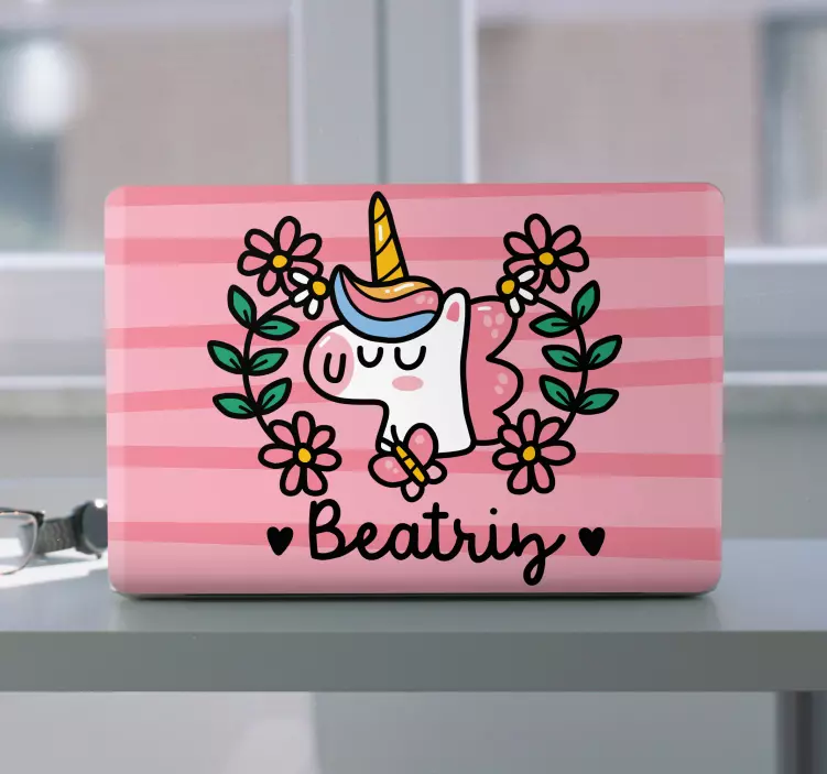 Transform your laptop into a canvas of creativity with our stunning Laptop skin with unicorn floral design. This whimsical design features enchanting unicorns surrounded by vibrant flowers and playful stripes, all in a delightful pink palette. Personalize your laptop with a custom name, making it uniquely yours! With its doodle-like drawing style, this colorful and cute skin is perfect for expressing your personality while protecting your device.