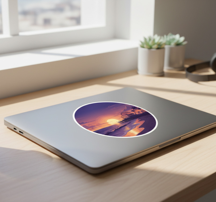 Laptop sticker coastal purple sunset scene