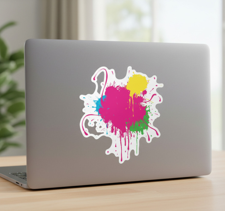 The Laptop sticker vibrant paint splash design Laptop sticker is more than just a decoration; it's a statement piece! Elevate your workspace and showcase your personality with this eye-catching design. Perfect for students and professionals alike, it inspires creativity and positivity every time you glance at your laptop. Transform your everyday device into a canvas of self-expression and let your imagination run wild!