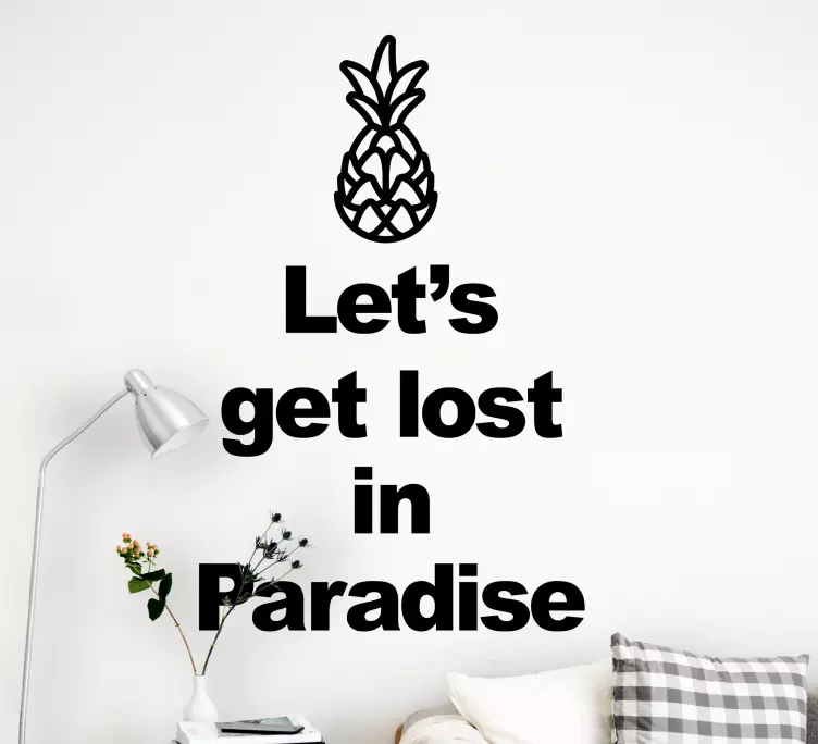 Reference: A48933This composition features a bold text statement accompanied by a pineapple illustration. The design invites a sense of adventure and relaxation, encouraging the viewer to embrace the idea of escaping to paradise. Perfect for enhancing any living space with a tropical vibe.