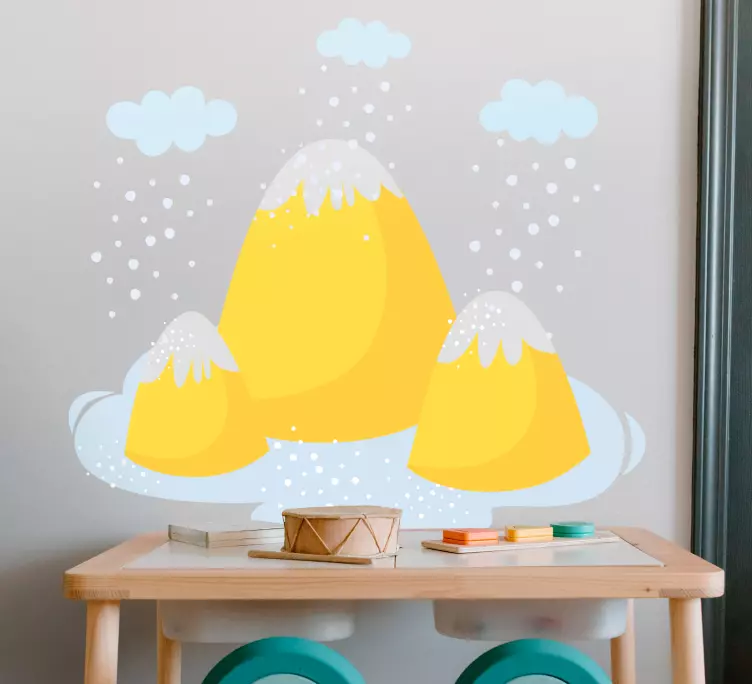 Transform your space with our stunning Nature wall sticker yellow mountain peaks. This beautiful design features whimsical yellow mountains, fluffy clouds, and hints of snow, capturing the essence of nature in a vibrant illustration. Perfect for those who love the great outdoors, this wall sticker brings a touch of adventure and serenity to any room!