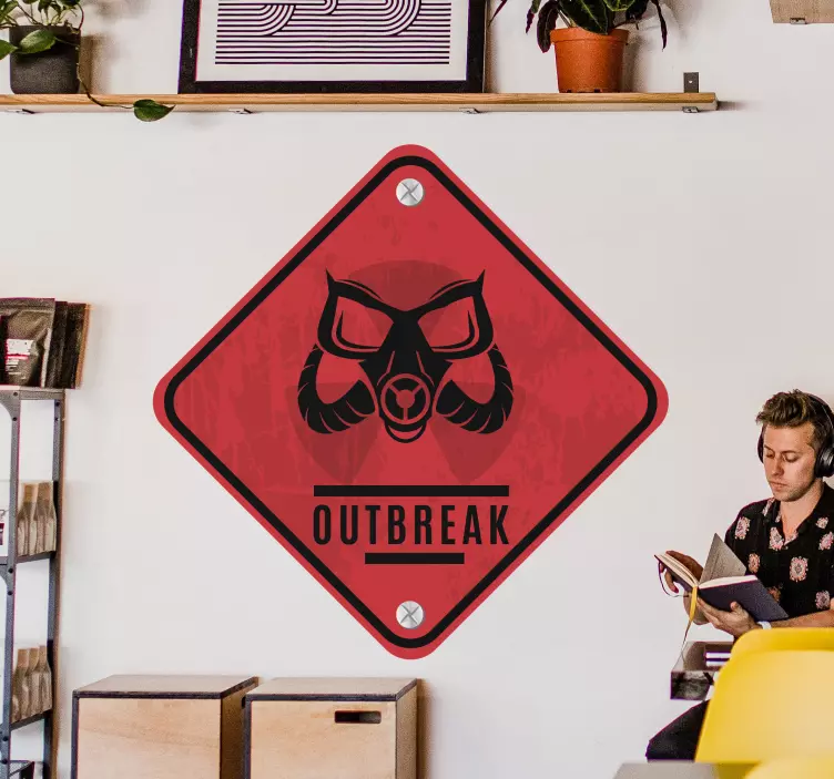 Introducing our Object sticker caution outbreak sign, a vibrant and eye-catching design that combines elements of gaming and warning symbols. The striking red color serves as an effective warning, while the graphic mask design brings a playful yet serious tone to any environment. This unique game-inspired sign is perfect for adding a layer of caution while livening up your space!