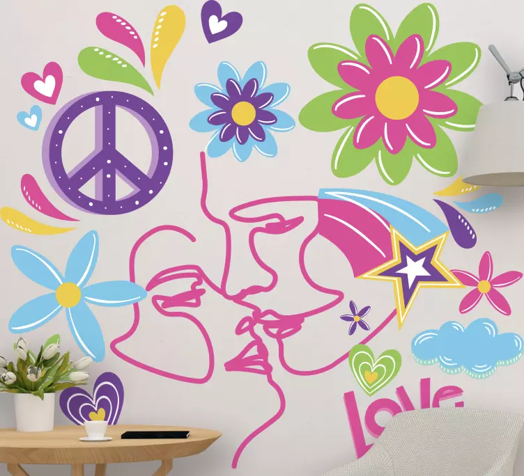 Introducing our Peaceful flower hearts decoration wall sticker, a vibrant and playful design that beautifully combines the essence of love and peace through its colorful line art. This urban-inspired wall sticker features delightful faces, flowers, and hearts, making it the perfect romantic addition to any space! Its enchanting appearance is sure to uplift your home and bring a smile to anyone who sees it.