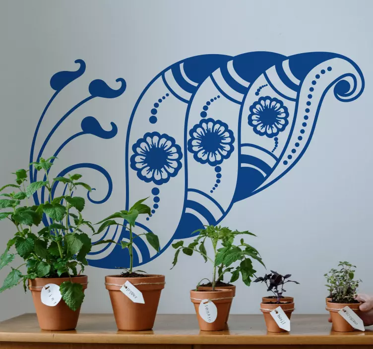 Introducing our stunning Plant sticker botanical leaf design, where artistry meets nature in a delightful fusion of ornamental beauty. This exquisite design features intricate swirls and patterns inspired by marine life, adorned with flowers and lush flora. Every detail celebrates the essence of nature, making it a perfect decorative piece for your home or office space!