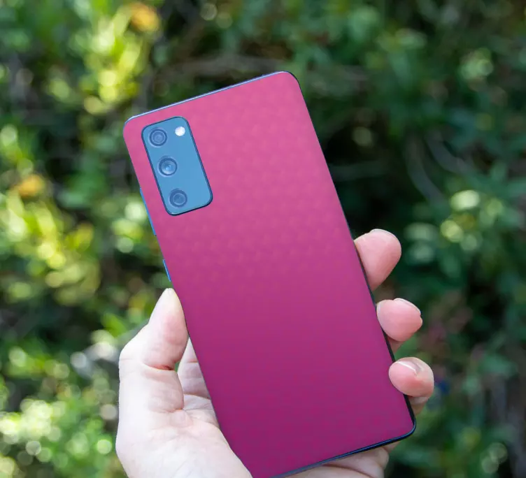 Transform your device with our Samsung stickers gradient color skin, featuring a stunning pink pattern that combines a sleek carbon finish with vibrant colors. This adhesive graphic design adds a playful touch to your phone while offering protection against scratches and bumps. With its eye-catching aesthetics, your Samsung mobile will stand out in any crowd!