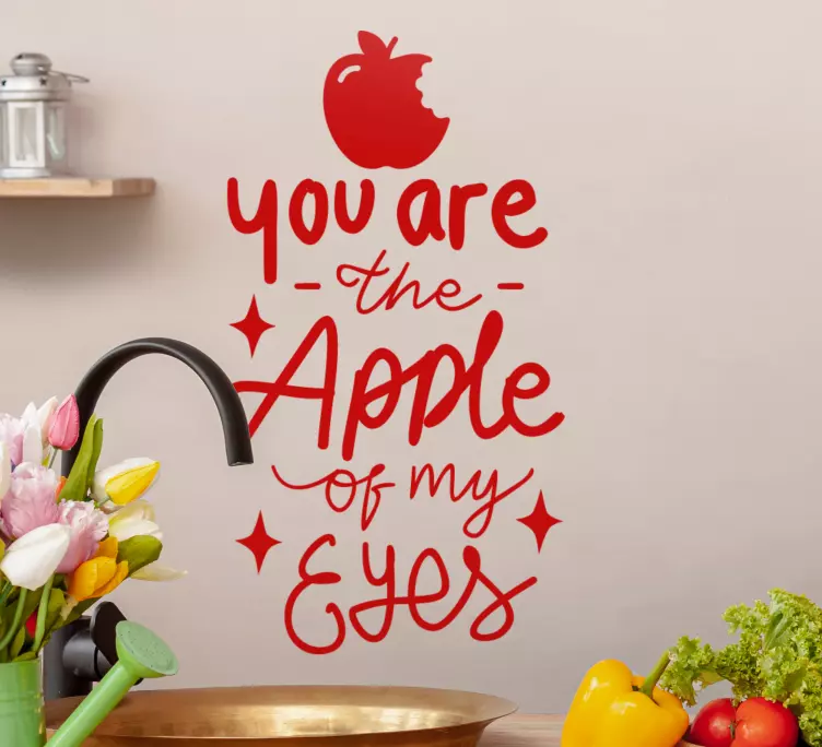 Transform your kitchen with our stunning Wall stickers quotes apple inspired sayings. This unique design features a vibrant red apple intertwined with inspirational phrases and charming eyes, creating a delightful atmosphere that uplifts your spirits. Each element of the design works harmoniously to motivate and inspire, making it the perfect addition to your culinary space!