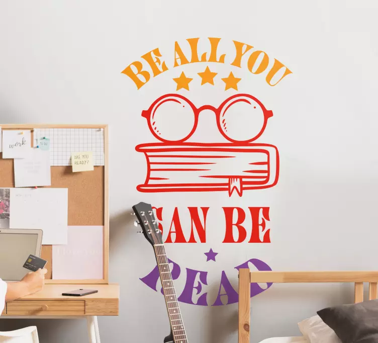 Transform your space with our stunning Wall stickers quotes motivational reading quote design! Featuring an urban aesthetic, this artwork incorporates elements of education, reading, books, and even a touch of whimsy with glasses and stars. The motivational text is crafted to inspire and uplift, making it a perfect addition to any home or office.