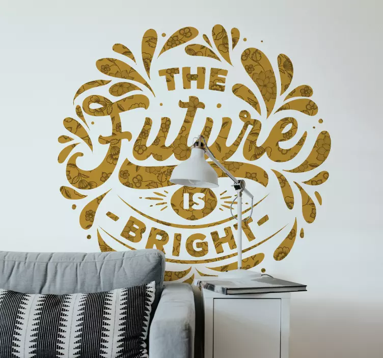 Transform your space with our stunning Wall stickers quotes the future is bright! This vibrant design features uplifting text in a beautiful yellow hue, complemented by floral elements and inspiring typography. It serves as a radiant reminder to embrace positivity and look towards a bright future, making any room feel more uplifting and cheerful!