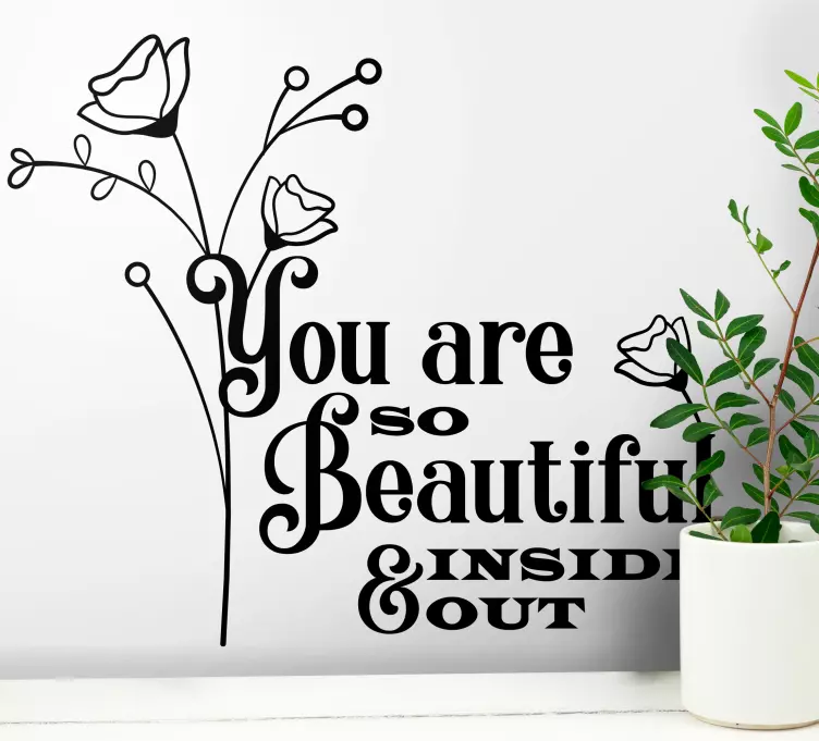 Transform your space with our stunning Wall stickers quotes you are so beautiful inside. This beautiful design features an elegant combination of floral elements and an inspirational message that radiates positivity. The exquisite flowers and captivating text come together to create a visual masterpiece that not only enhances your decor but also uplifts your spirit. Embrace the beauty within and let this quote inspire you every day!