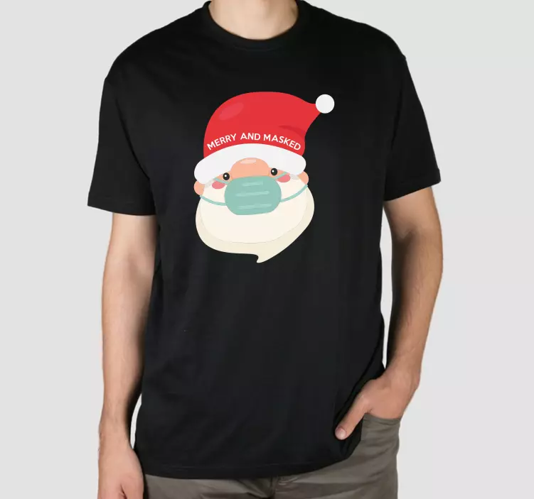 Introducing our Christmas t-shirt merry santa with face mask! This festive design showcases a cheerful Santa wearing a face mask, blending holiday spirit with a touch of humor. The vibrant colors and playful text create a fun and funny atmosphere, perfect for spreading joy during the Christmas season. Whether you're celebrating with family or friends, this masked Santa is sure to bring smiles and laughter!
