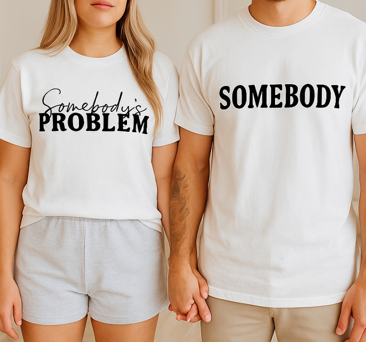 If you’re searching for a fun and meaningful way to express your relationship, the Somebody's problem couple t-shirt is just what you need! This couple t-shirt is not just a piece of clothing; it’s a conversation starter and a way to showcase your bond. Imagine wearing matching shirts with your partner, sharing laughs and making memories! This t-shirt is perfect for date nights, casual outings, or just lounging at home. Spread joy and laughter with this delightful piece of apparel!