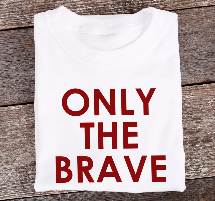 Reference: T4822This design features a bold text statement emphasizing bravery. The strong typography captures attention and conveys a message of courage. Ideal for expressing strength, this piece resonates with individuals who appreciate impactful phrases in their wardrobe.