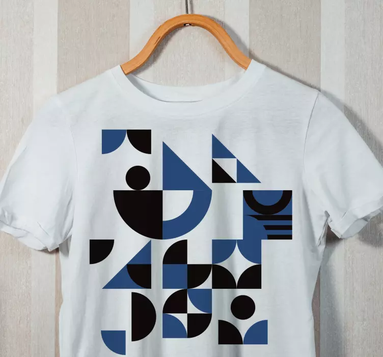 Introducing our stunning Geometric patterned t-shirt that features a captivating design of intricate geometry and abstract shapes. The bold graphic illustration showcases a stylish puzzle of blue and black geometries that makes this t-shirt a modern wardrobe staple. Perfect for anyone looking to express their unique style!
