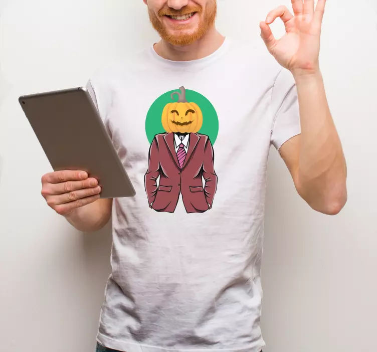 Get ready to celebrate Halloween in style with our Halloween t-shirt pumpkin head costume! This eye-catching design features a quirky pumpkin head on a tuxedo-clad man, perfect for anyone looking to add a touch of humor to their Halloween festivities. With its vibrant colors and playful theme, this Halloween t-shirt is not just a costume, but a fun way to express your spirit during the celebration!
