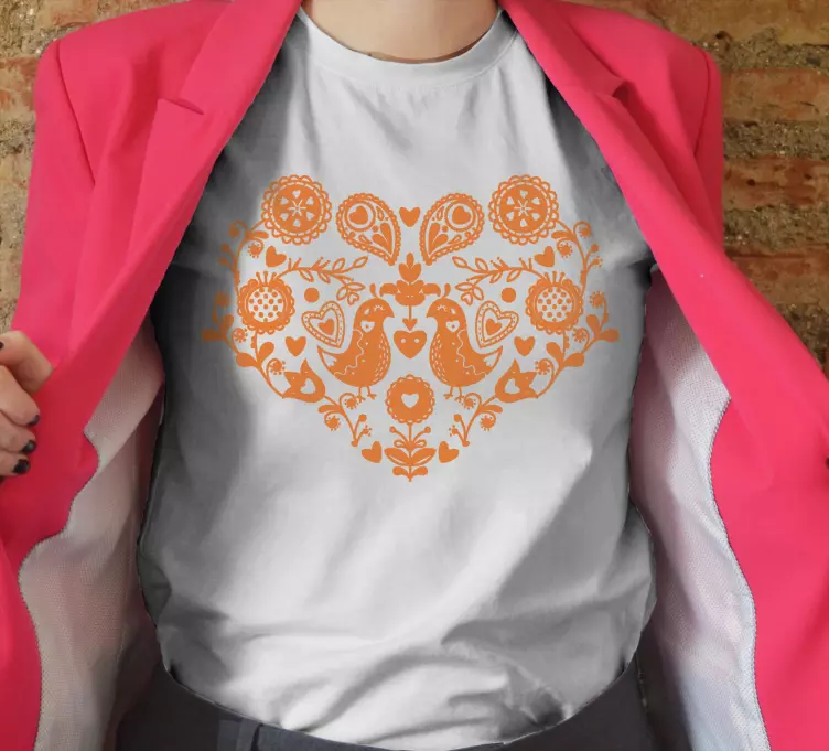 Embrace your unique style with our Heart pattern birds t-shirt. This t-shirt is not just an article of clothing; it’s a statement of your personality and passion for art. The exquisite design captures the essence of nature and love, making it perfect for expressing your individuality. Wearing this t-shirt inspires confidence and joy, reminding you to share love and beauty wherever you go!