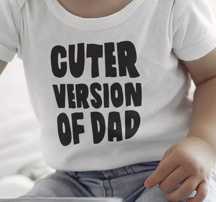 Reference: T5401This playful design features bold, stylized text that reads 'Cuter Version of Dad.' The black lettering contrasts with a light background, creating a fun and engaging look for a child’s outfit. Ideal for celebrating family connections with a humorous twist.