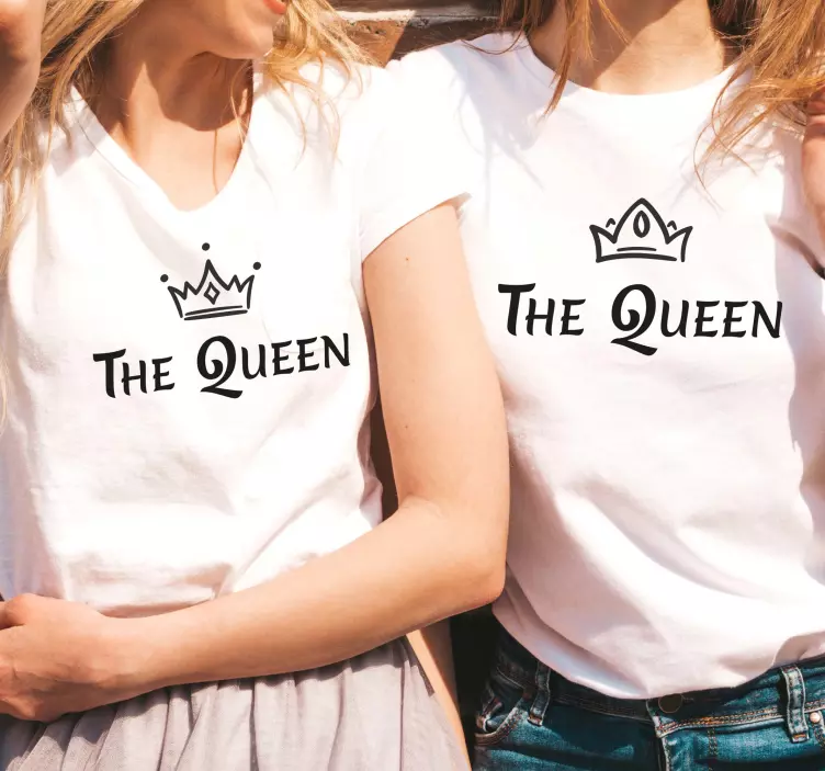 Reference: T4073This image showcases a heartwarming moment between a mother and daughter, both wearing matching outfits that proudly display the phrase 'The Queen.' The playful design, accentuated by crowns, symbolizes their special bond and shared moments of joy.