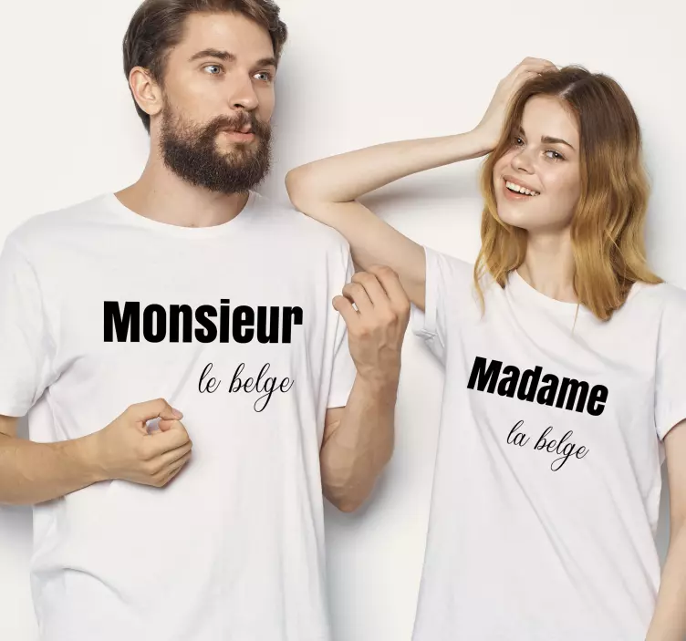 Introducing our delightful Mother and daughter t-shirts monsieur madame couple tees, designed to celebrate the beautiful bond between mothers and daughters! This chic and casual fashion choice features a white backdrop adorned with charming quotes and playful text. The matching t-shirts are perfect for showcasing your unique styles while emphasizing your connection. With a touch of Belgian flair, these couples tees are ideal for creating lasting memories!