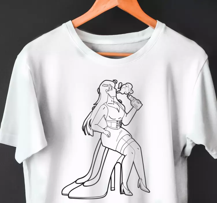 Introducing the Stylish high heel vibe t-shirt, a captivating blend of art and fashion! This unique design showcases a woman in a confident silhouette, hand-drawn to perfection. The illustration features elegant high heels, a touch of smoking and vape culture, all intertwined with a lively cocktail vibe. Perfect for making a statement, this t-shirt embodies the essence of modern fashion!