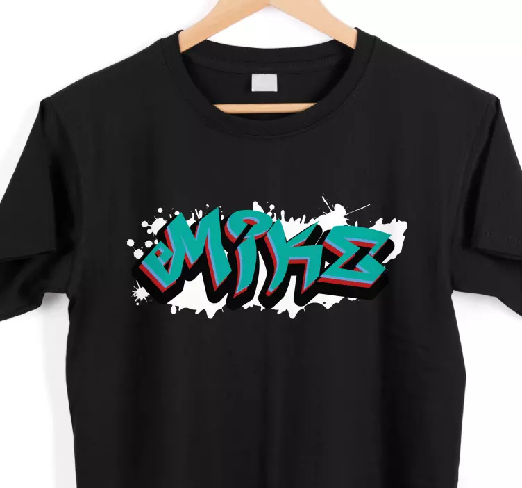 Unleash your creativity with our T-shirt with name bold name design, a vibrant celebration of graffiti and street art! This unique piece showcases a playful style with graphic typography that pops against the black fabric. With a blend of urban art influences, this customisable shirt allows you to express your individuality. The dynamic vibrant colors and custom name options will surely make a statement wherever you go!