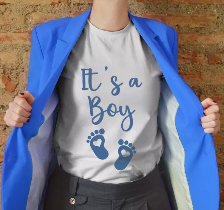 Reference: T4562This design celebrates the arrival of a baby boy with charming foot graphics and a playful phrase. Perfect for expecting parents, it conveys joy and excitement, making it an ideal choice for sharing the happy news. The modern typography captures attention while showcasing love.