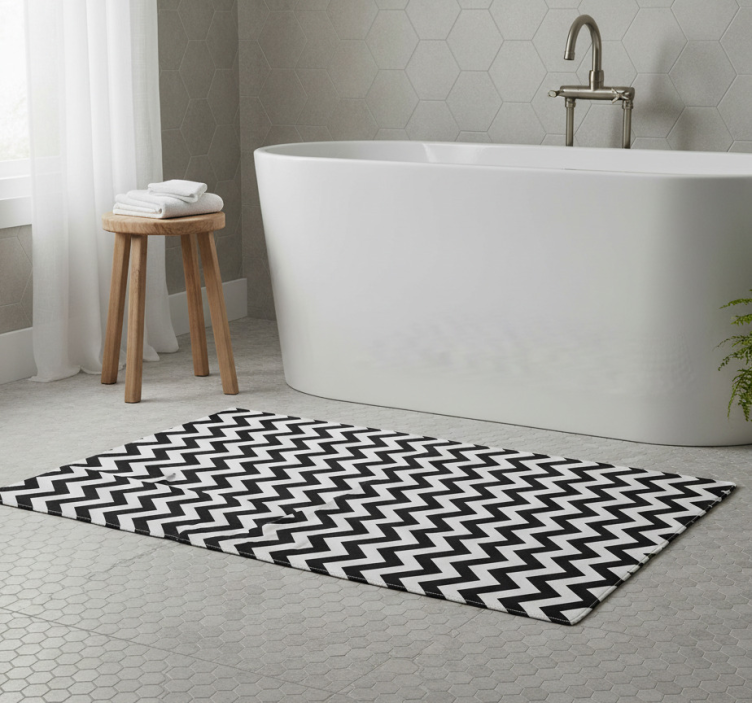 The Bathroom vinyl rug with triangle patterns bathroom vinyl rug is not just a practical choice but also a stunning decorative piece. Its unique geometric design brings a fresh and contemporary look to your decor, inspiring creativity and style. Enhance your bathroom ambiance and express your personality with this striking rug!