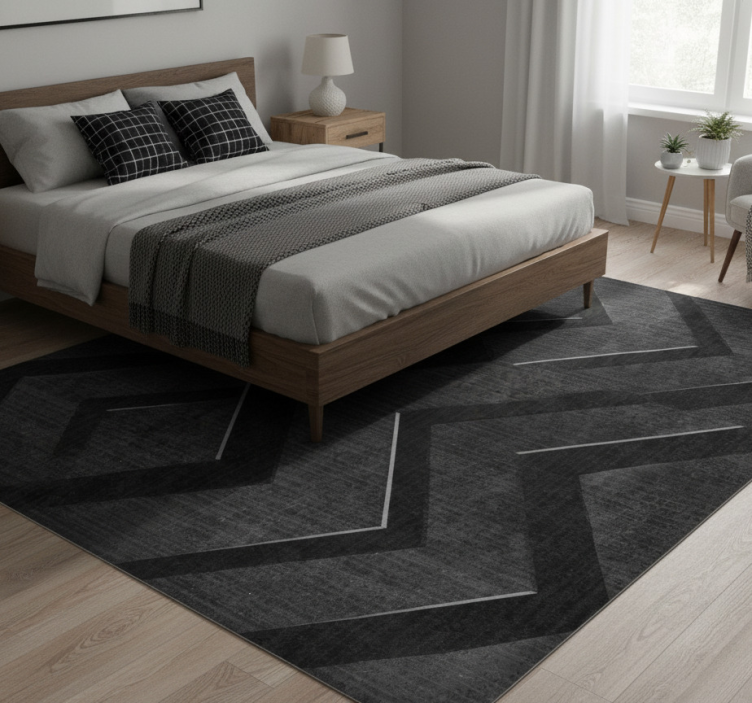 Bedroom vinyl rug with black steel stripes