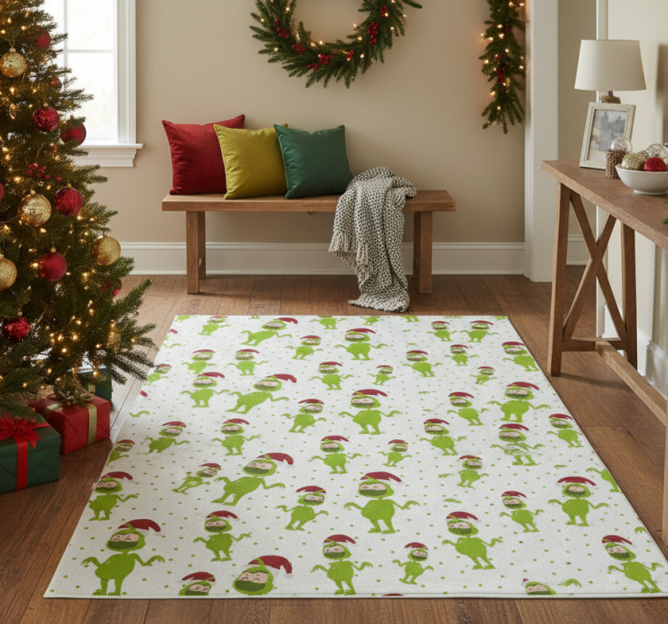 The Christmas vinyl rug merry christmas with face mask is a must-have for anyone looking to elevate their home decor this holiday season. With its festive charm, this Christmas vinyl rug creates a warm and inviting atmosphere, perfect for gatherings with family and friends. Its unique design evokes joy and laughter, making it an ideal centerpiece for your festive décor!