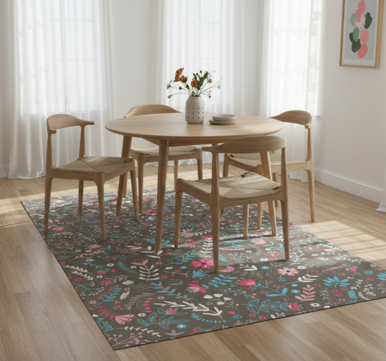 The Floral vinyl rug in vibrant tiny flower design floral vinyl rug is the perfect decorative piece to elevate your interiors! Its lively patterns breathe life into dull spaces, creating an inviting atmosphere. Imagine stepping onto a beautiful flower garden every day! This rug effortlessly complements various decor styles, making it a versatile choice that brings joy and warmth into your home.