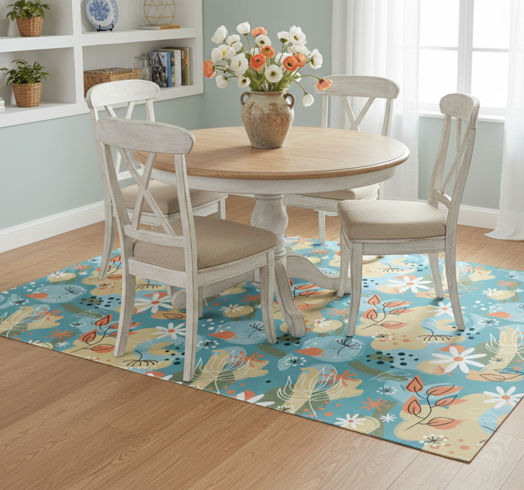 Caring for your Floral vinyl rug with abstract flat floral design is a breeze! Simply wipe it down with a damp cloth or mop to keep it looking fresh and vibrant. Its durable material ensures that it remains stunning for years to come, making maintenance quick and easy.