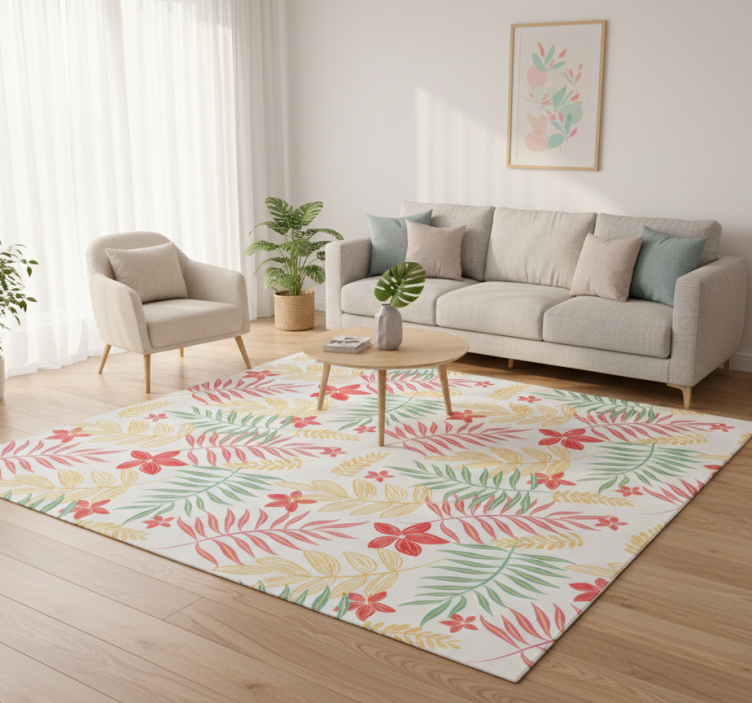Floral vinyl rug with neon leaves pattern