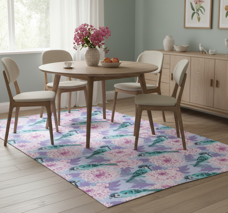 The Floral vinyl rug with pink garden flowers and birds floral vinyl rug is the perfect addition to your home decor, offering not just beauty but also a sense of warmth and welcome. This charming piece effortlessly elevates the ambiance of any room, making it ideal for living rooms, bedrooms, or play areas. The enchanting floral design brings nature indoors, inspiring joy and tranquility. Embrace the beauty of nature with this exquisite rug that invites creativity and comfort into your home!
